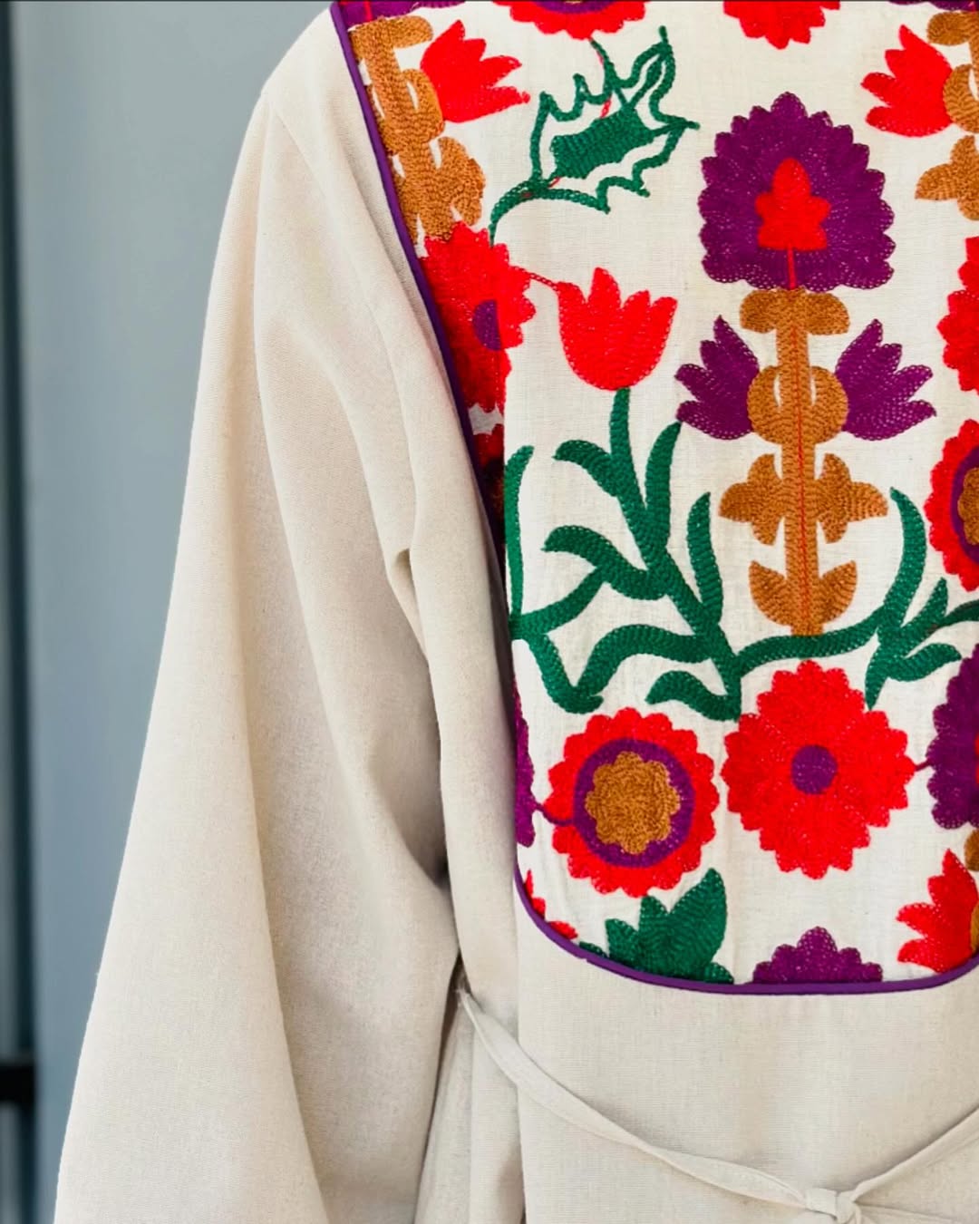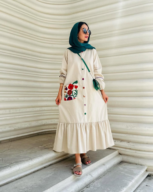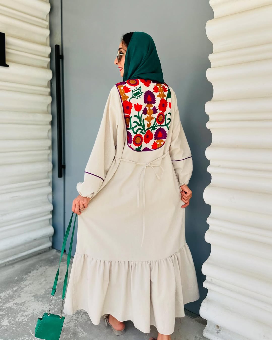 عاشق طرح پشتش شدم از اون کاراست که تن همه نمیبینید خیلی خاص وخوشگله رنگ بیسشم کرمه که با یه جعبه مداد رنگی بتونید ست کنید چینای پایینش دکمه های سوزندوزیش جیب نا متقارنش و مغزی کار شده روش خیلی کیوتش کرده بند تنظیمداره و به راحتی میتونید سایزشو اوکی کنید جنس لینن نچرال ولینن سوزندوزی دوسایزی سایز1دورسینه115 سايز2دورسينه130 با قد دلخواه تا135(قد بلندتر شامل افزایش میشه) ثبت دايركت و واتساپ پرداخت دو مرحله ای ارسال به همه جا جزییات بیشتر رو از استوری ها دنبال کنید Follow me : @mezoon_prancess Follow me : @mezoon_prancess
