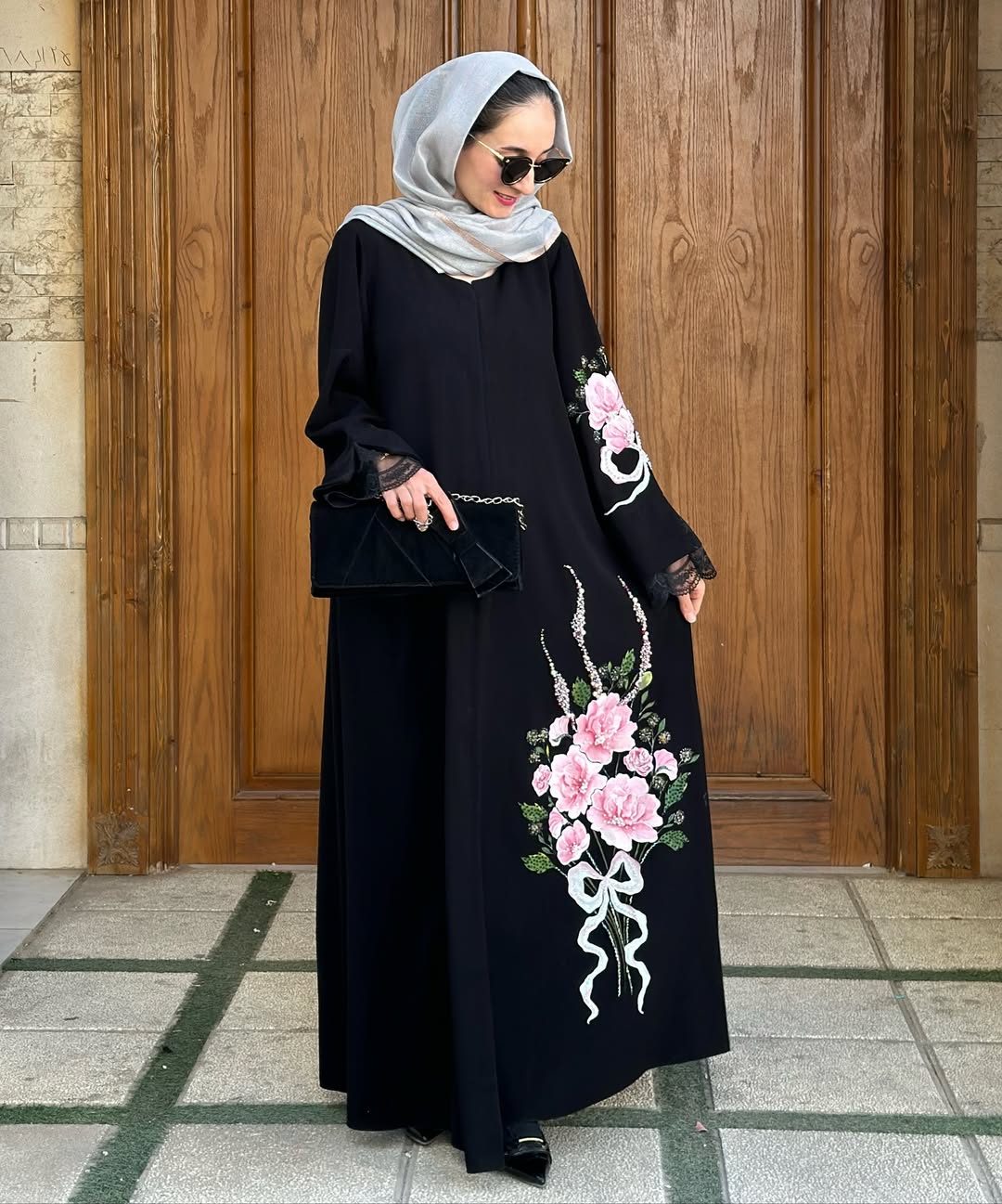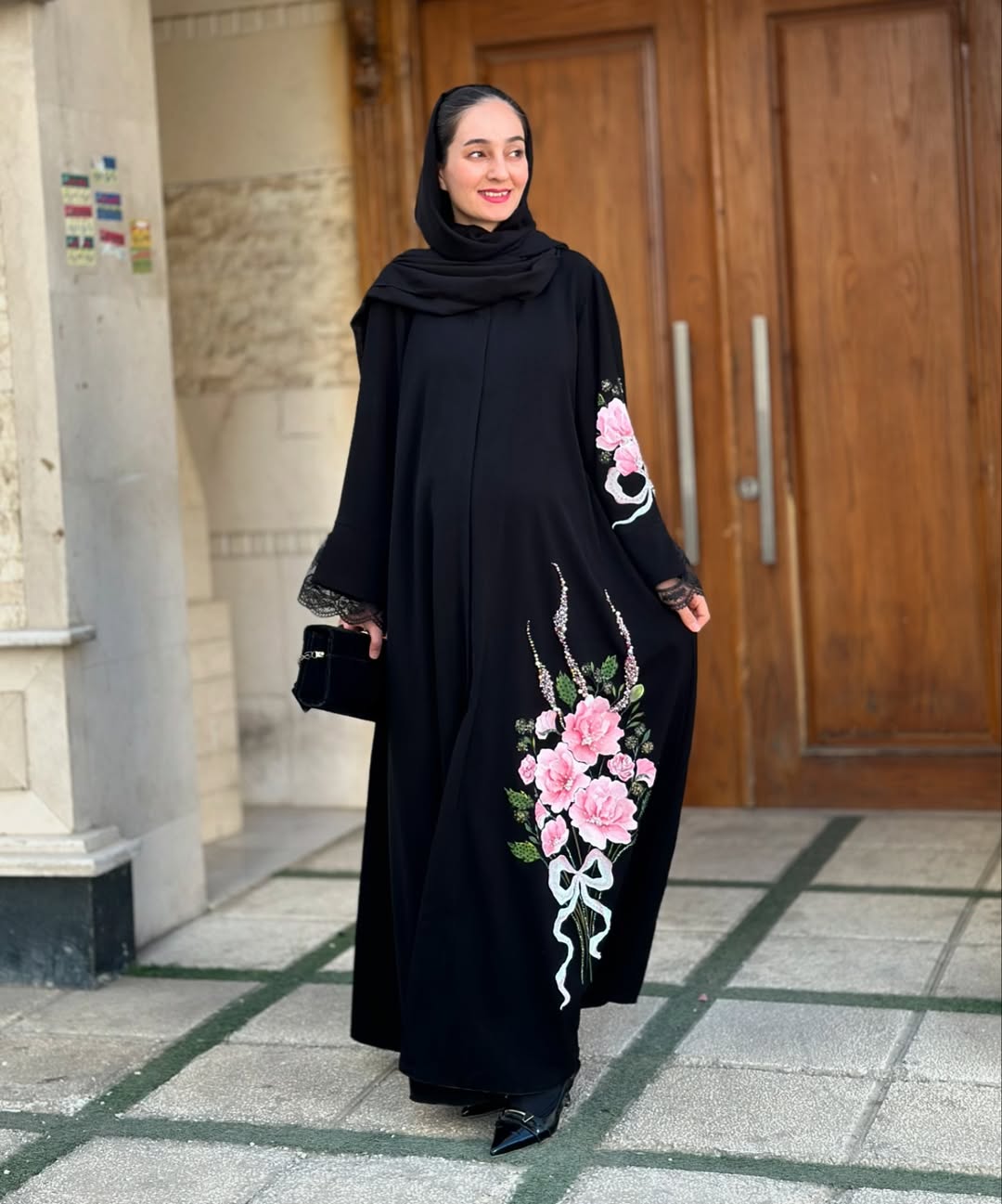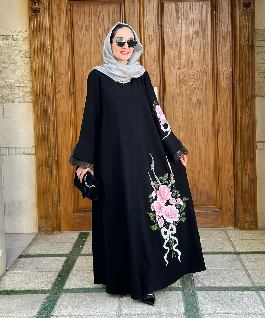 با شال مشکی قشنگتر شده یا نقره ای آخرین پست عبا(رز) مناسب مهمانی استفاده روزمره و مجالس بی نهایت پارچه ش مشکی وخوشگله تمام جواهر دوزی و نقاشی شده از بهترین دانتل بازار برای سر دستش استفاده شده جلوی عبا دکمه داره و بسیار راحته جنسش کرپ مرویجت سایز فری سایز با قد دلخواه شما جهت استعلام کلمه رز رو کنید جهت ثبت و سایت Wwwsoumeshakouri.ir #عبامجلسی